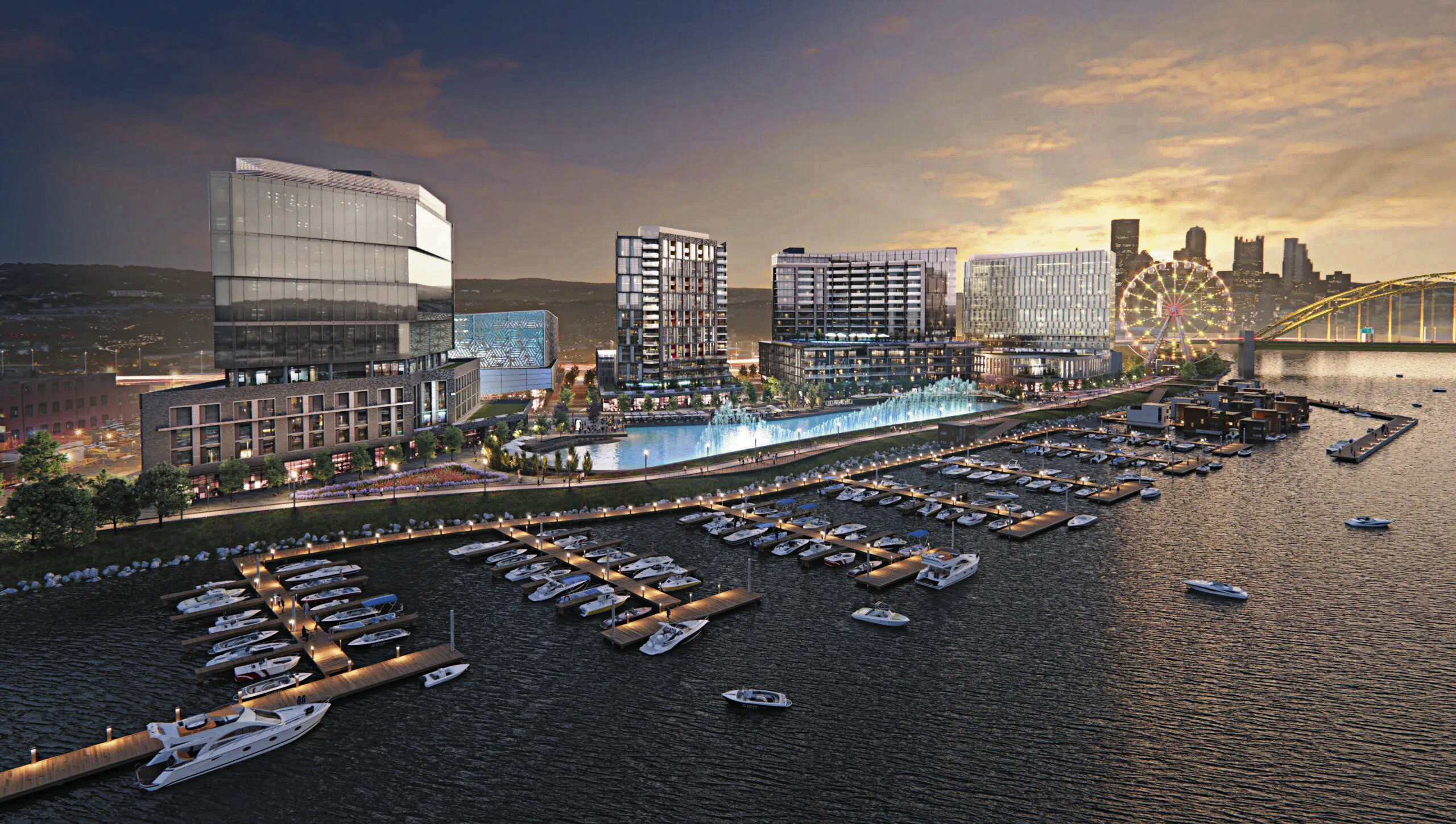 Initially announced in 2017, Esplanade is a redevelopment of 15 acres of former industrial land along the Ohio River estimated to cost $740 million. The project will include retail space, a splash park/ice skating area, up to 300-unit apartment buildings, a marina, a hotel, and notably a Ferris wheel.